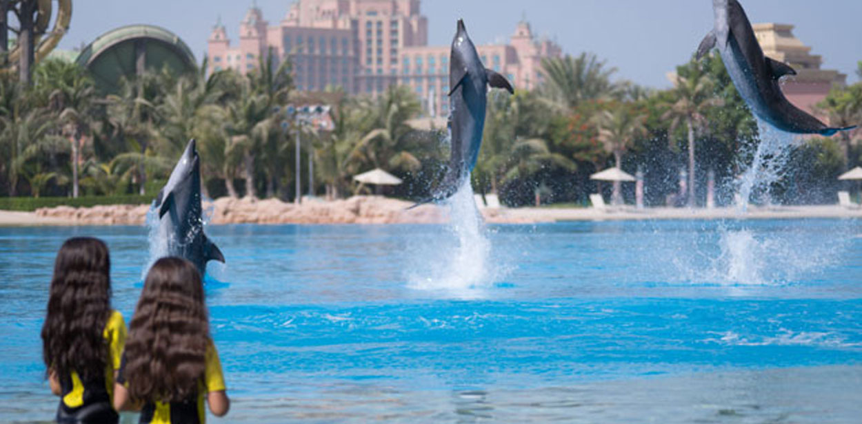 أتلانتس النخلة تنظم عروض الدلافين لزوارها بشعبية كبيرة وواسعة خصوصاً حق الصغار, ويحصل الهواة على فرصة مشاركتهم في انشطة كثيرة ومناسبة لكل الأعمار.